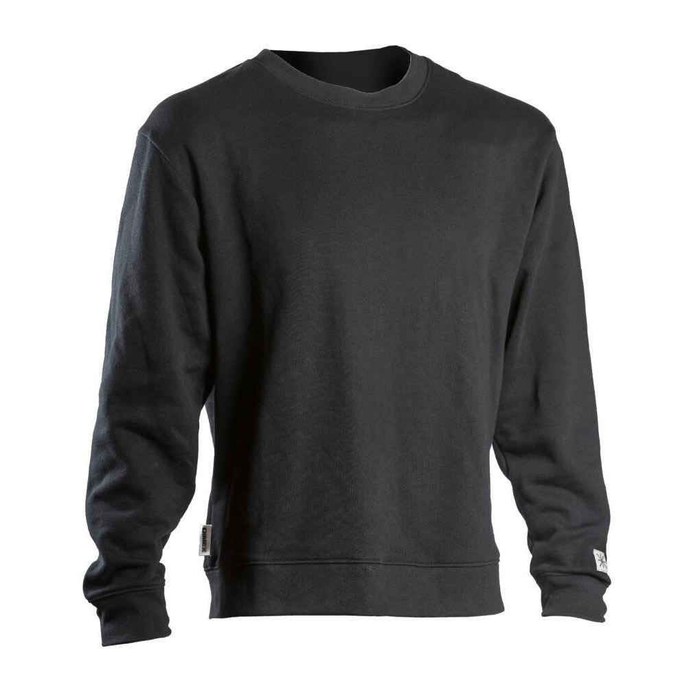 Musta collegepaita, johon saa hyvin painettua yrityksen logot. Pehmeä laadukas kangas tuntuu hyvältä käytössä niin töissä kuin vapaa-ajalla. Paidan mitoitus on rennon väljä.
