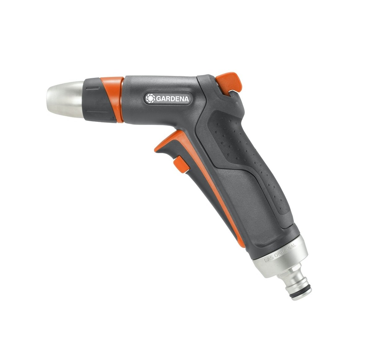 Kestävä GARDENA Premium -ruiskupistooli sopii mainiosti sekä puhdistamiseen että kasteluun. Suihkun muotoa voidaan säätää hienosta sumusta kovaan, pistemäiseen suihkuun. Metallinen suihkun pää ja liitin ovat äärimmäisen kestäviä. Ergonominen, pehmein muoviosin varustettu kahva varmistaa erinomaisen käyttömukavuuden. Veden virtauksen voimakkuus on säädettävissä portaattomasti. Liipaisin on helppo lukita, mikä mahdollistaa pitkäkestoisen kastelun ilman käden väsymistä. Premium-ruiskupistoolissa on innovatiivinen jäätymisenesto.