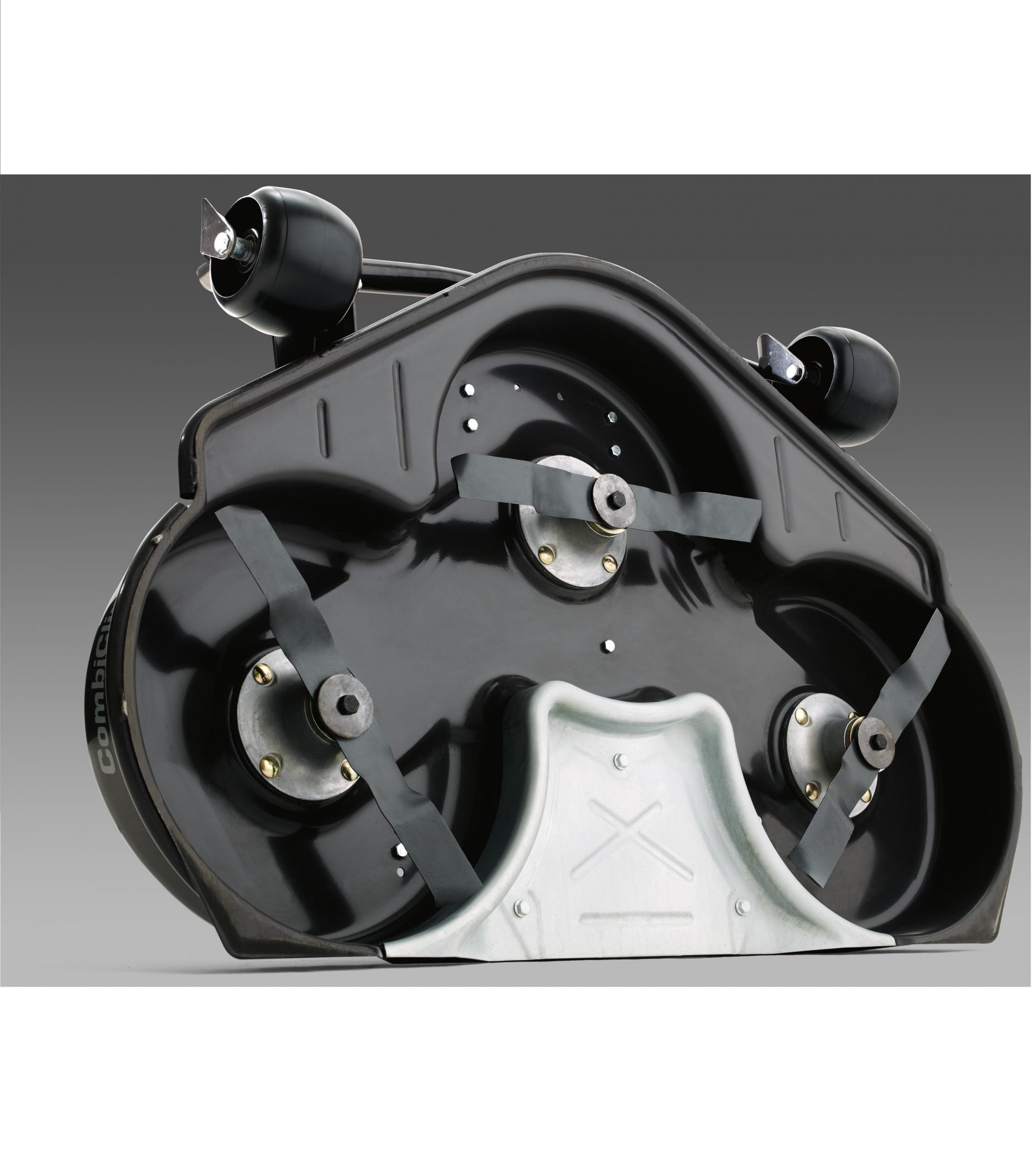 112 cm Combi-leikkuulaite, jota on mahdollista käyttää sekä silppuavana että taaksepuhaltavana.