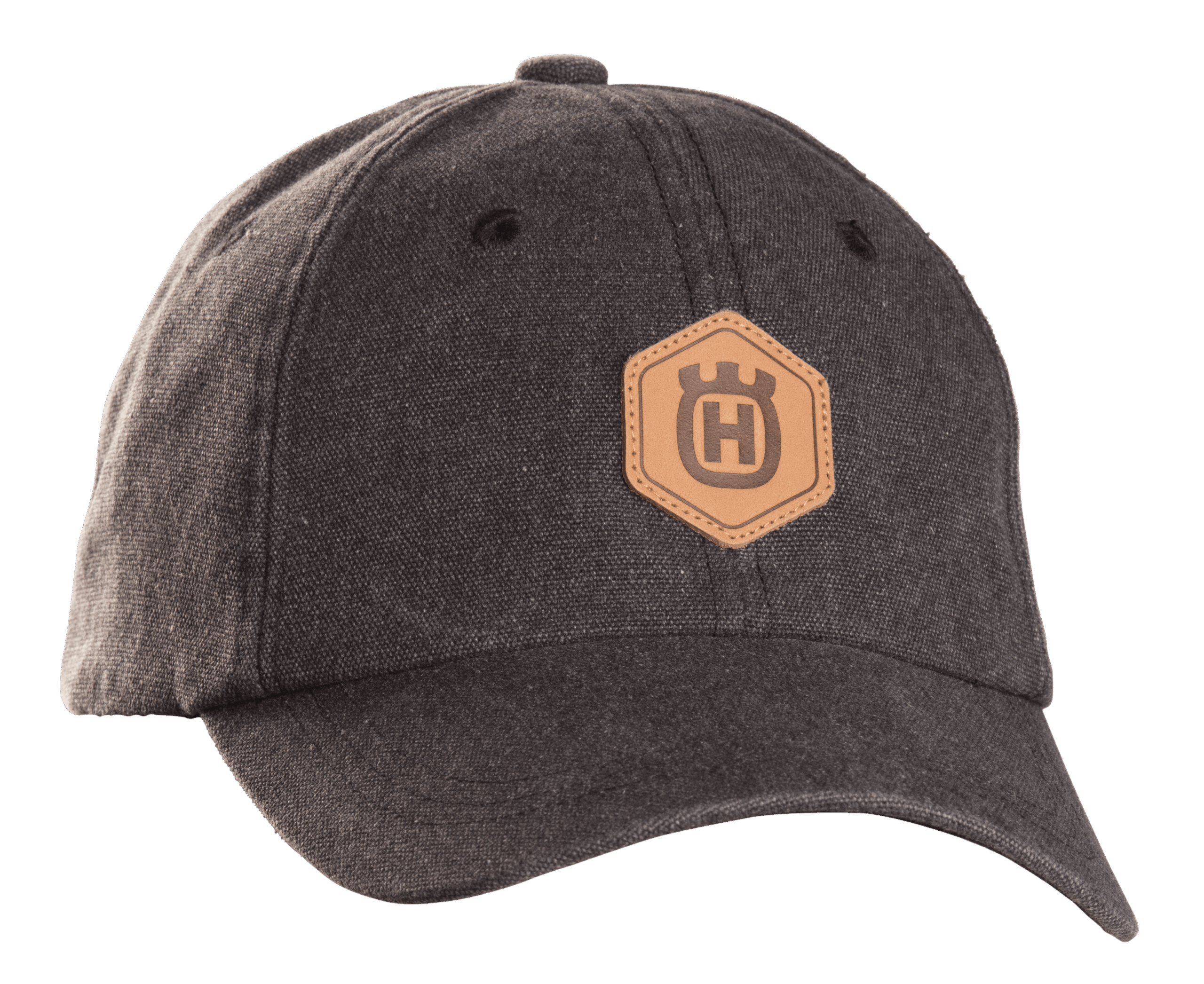 Graniitinharmaassa kanvaskankaisessa lippalakissa on säätöä varten nahkanauha, jonka avulla lakki kiristetään päähän sopivaksi.