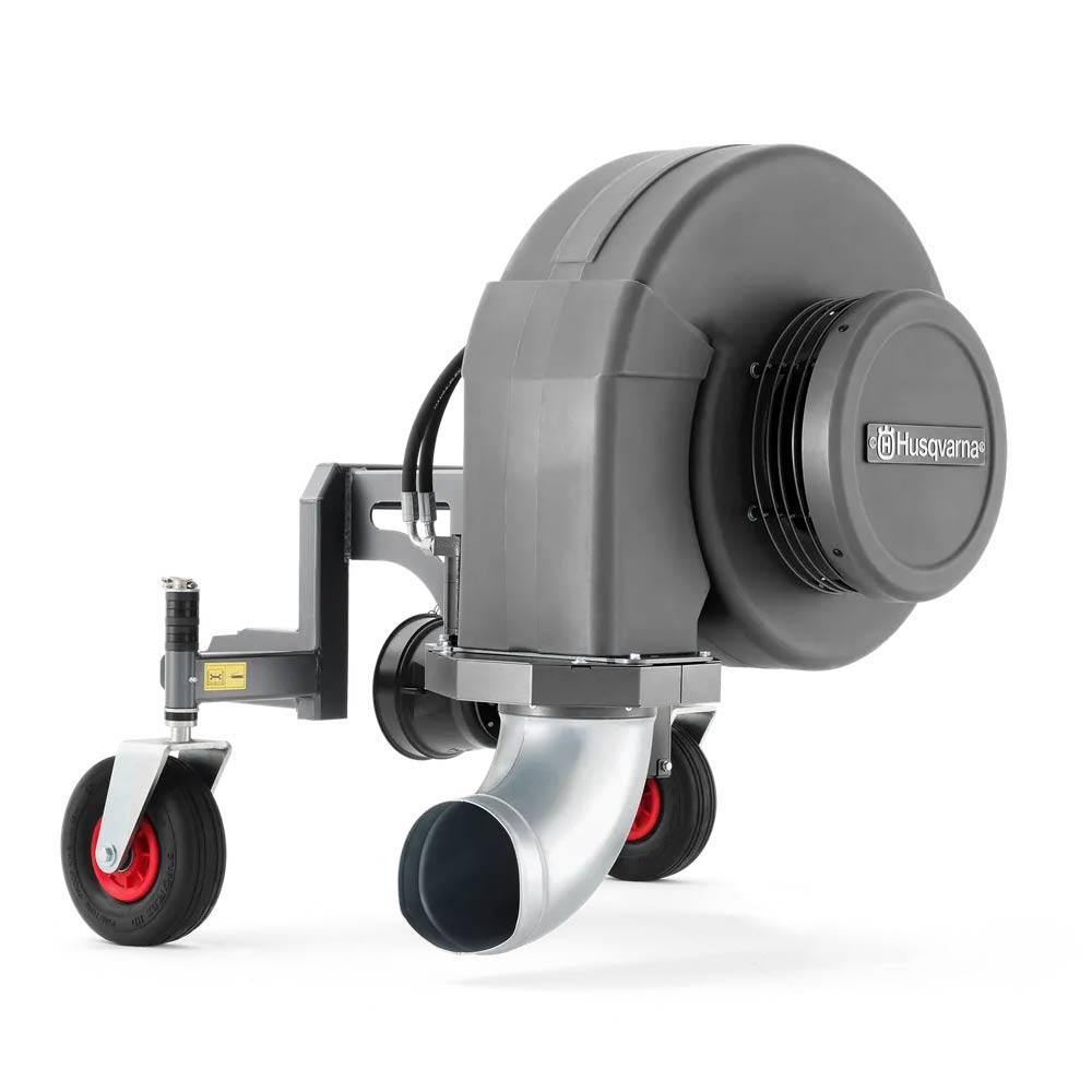Suurtehopuhallin lehtien ja roskien poistoon. Akselivetoinen puhallin. Puhallusputki kääntyy 360 astetta ja sitä voidaan ohjata kuljettajan penkiltä. Vaatii hydraulisarjan.
