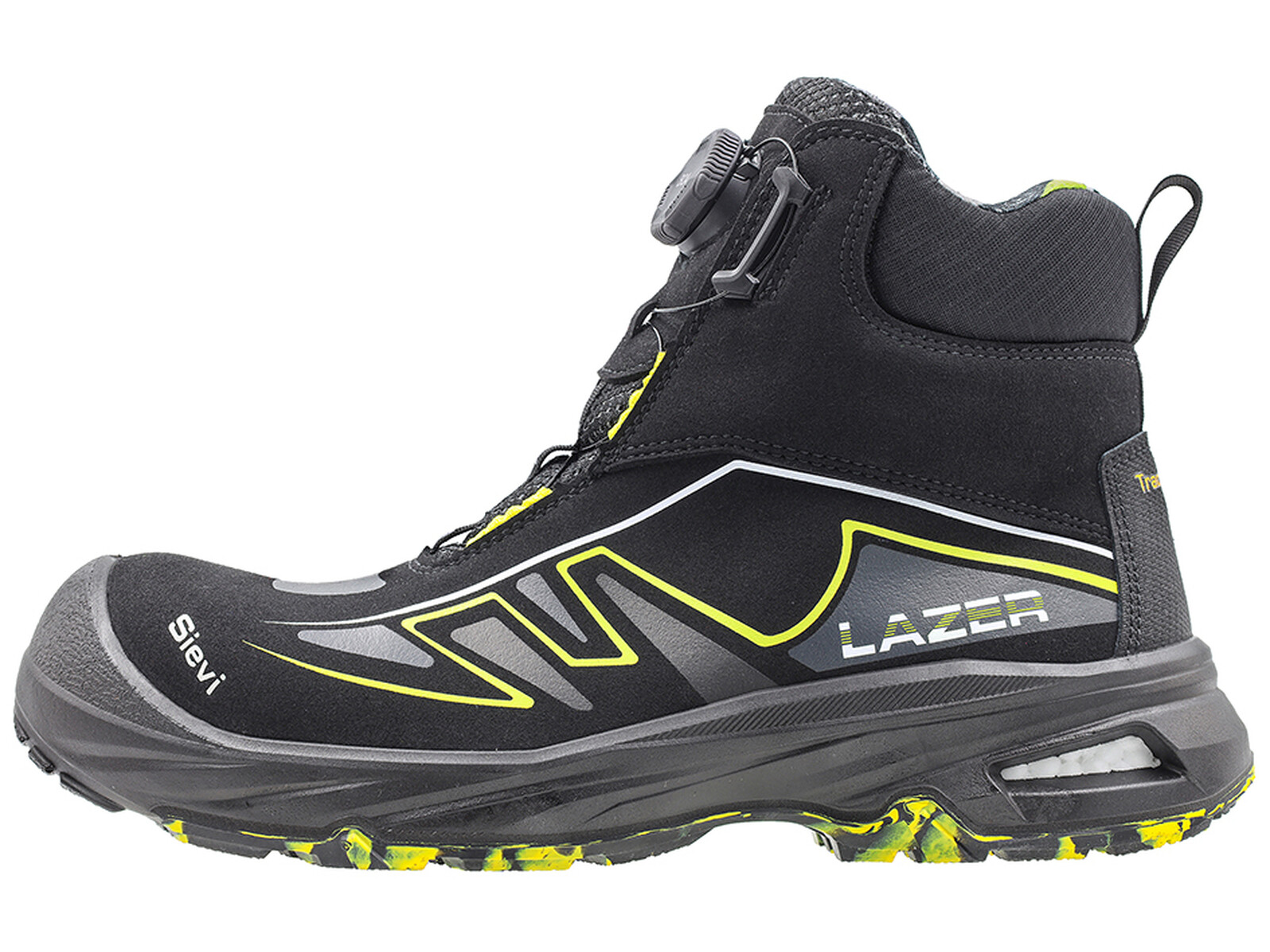 Lazer Roller High+ nilkkurissa on aukollinen kantarakenne. FlexEnergy®-joustoelementti näkyy jalkineen kannassa olevista aukoista, jotka mahdollistavat elementille suuremman liikkuvuuden lisäten näin jalkineen edistyksellistä joustavuutta. Pidon varmistaa Sievi TractionPro®-kitkapohja. Nilkkaosassa on PORON XRD® tuki, joka myötäilee jalkaa, tukee nilkkaa sekä vaimentaa siihen kohdistuvia iskuja.