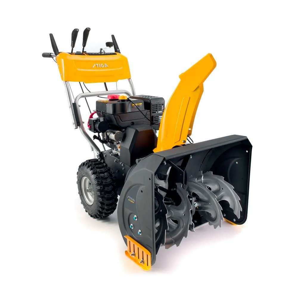 STIGA ST 4262 P on luotettava kaksivaiheinen lumilinko, joka pystyy linkoamaan jopa 50 cm syvän lumen keskikokoisilta tai suurilta alueilta, kuten ajoteiltä, kiveyksiltä ja pysäköintialueilta. moottorin 3,8 kW (3 600 rpm) tehon ja 62 cm lumiruuvin ansiosta laite pystyy käsittelemään myös pakkautunutta lunta. Lumi lingotaan haluamaasi suuntaan heittotorven kautta, jota ohjataan ohjauspaneelissa olevalla kampikahvalla. Kaikki säätövivut (heittotorvea, lumen ulosheittoa ja nopeutta ohjaavat) sijaitsevat kätevästi ohjauspaneelissa. 14″ Snow Hog -renkaat takaavat hyvän pidon, ja kahdet käännettävät jalakset (metallia/HDPE-komposiittia) mahdollistavat työskentelyn kaikenlaisilla pinnoilla vahingoittamatta herkempiä pintoja. Nopeutta voi hallita vaihteilla, joita on kuusi eteen ja kaksi taakse.212 cc polttomoottori